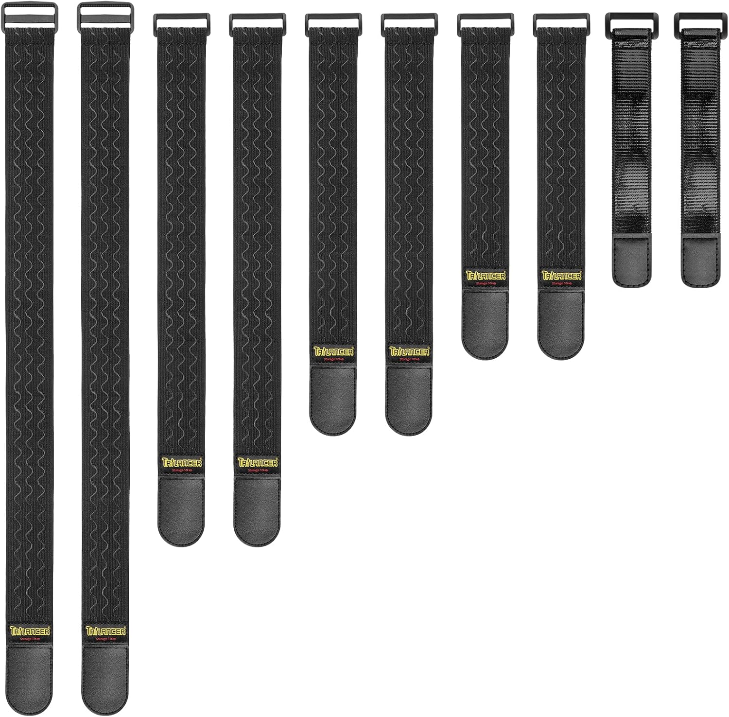 Die Trilancer Gurtbänder werden in einem Set von 10 Stück geliefert, das verschiedene Größen umfasst: 2 x 61 cm, 2 x 46 cm, 2 x 36 cm, 2 x 30 cm und 2 x 23 cm. Diese Vielfalt ermöglicht es Nutzern, die passende Größe für unterschiedliche Anwendungen auszuwählen, sei es für die Organisation von Verlängerungskabeln, Gartenschläuchen oder sogar Sportgeräten. Die flexiblen Längen sind besonders nützlich, um selbst unhandliche Gegenstände sicher zu fixieren. Mit dieser Größenauswahl wird die Vielseitigkeit der Gurtbänder deutlich, was sie zu einem praktischen Begleiter in Haushalt und Werkstatt macht.