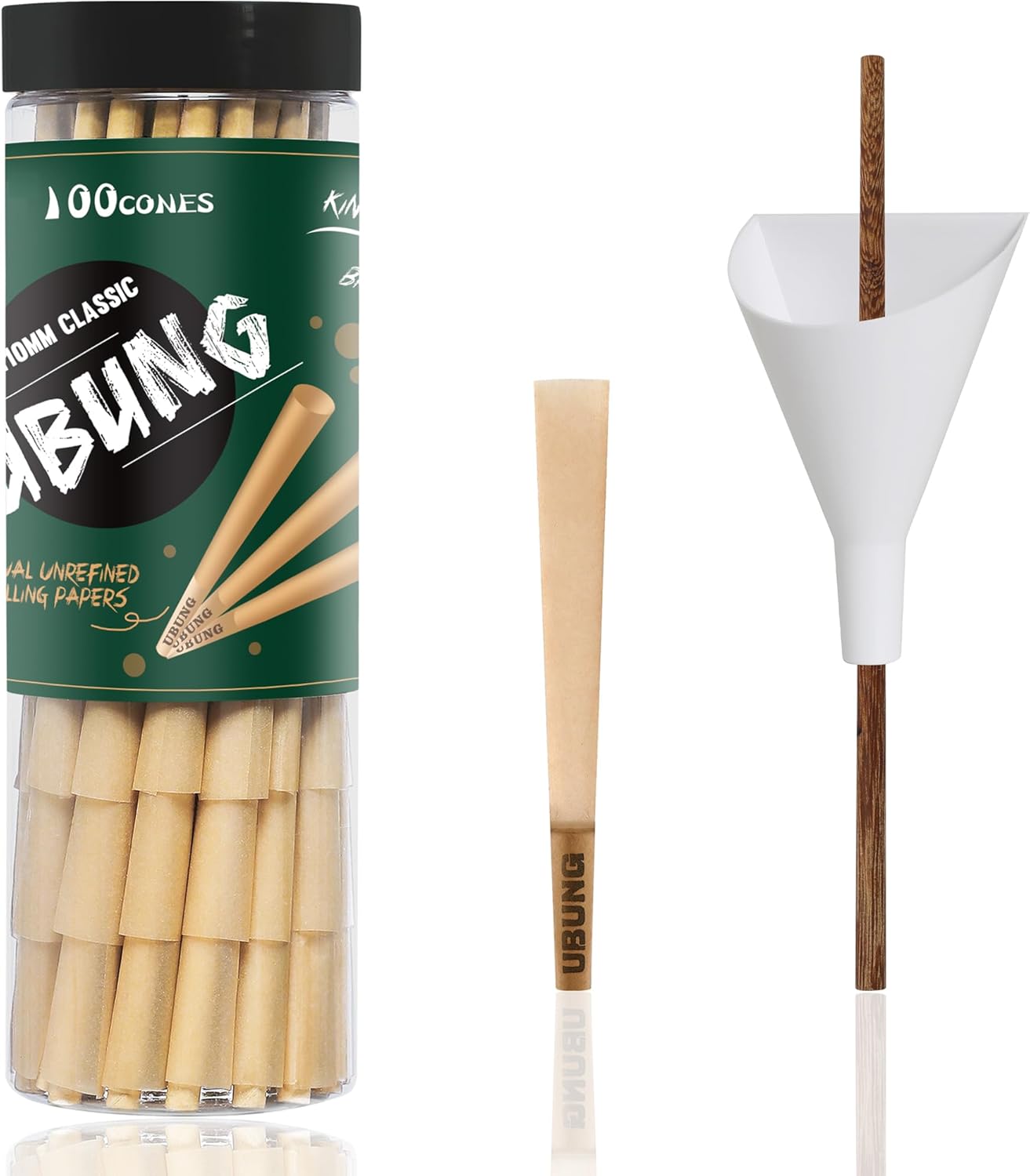 Das Set besteht aus 100 vorgerollten braunen Cones, die in einem praktischen Glasbehälter geliefert werden. Diese sind in vier Schichten zu je 25 Cones unterteilt, was die Handhabung erleichtert und dafür sorgt, dass man immer genügend Vorrat hat. Zusätzlich werden ein Trichter für das Befüllen der Cones sowie ein Schieber mitgeliefert, die die Vorbereitung deutlich beschleunigen. Mit einem Preis von 12,99 EUR für 100 Cones bietet UBUNG ein attraktives Preis-Leistungs-Verhältnis, besonders wenn man bedenkt, dass viele Nutzer die Qualität der Cones loben.