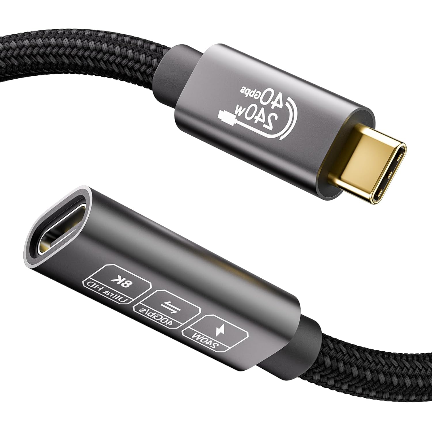 USB C Verlängerung 1m,USB 4 Verlängerungskabel 40Gbps,8K@60Hz,240W 48V/5A Thunderbolt Verlängerungskabel,USB C Stecker auf Buchse für Thunderbolt 4/3,USB 3