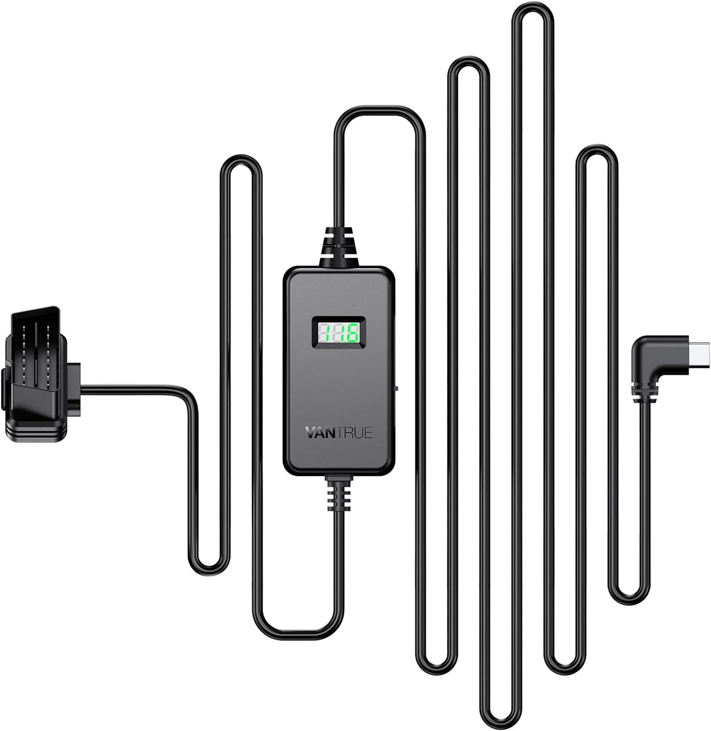 VANTRUE USB C Display OBD Hardwire mit 3 Stufen für alle Vantrue Dash Cam Halterung, Niederspannungsschutz 11.6V/12V/12.4V, 23.6V/24V/24.4V, 24 Std. Parküb