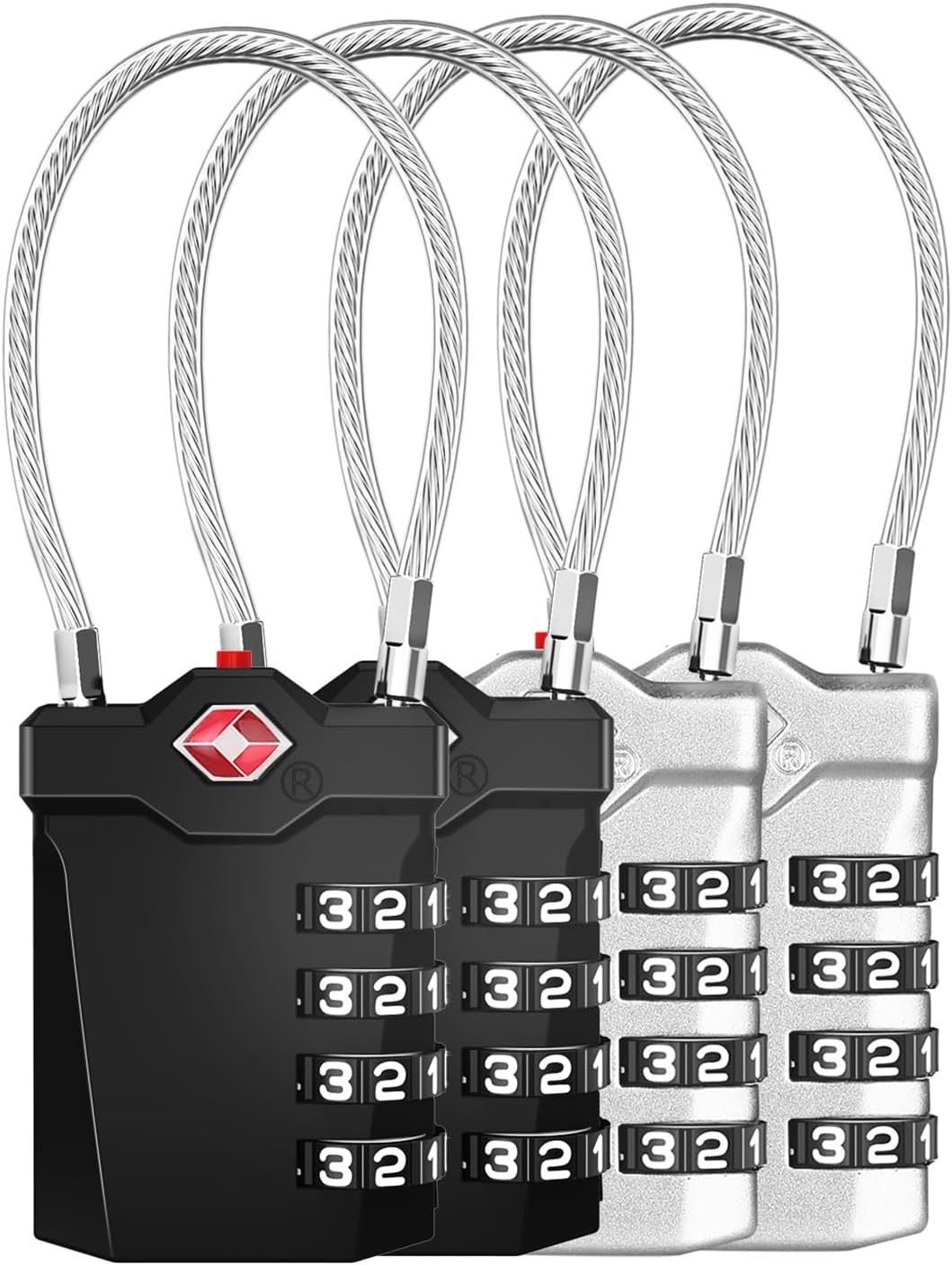 ZHEGE Kofferschlösser Zahlenschlösser 4 Stellig, TSA Schlösser, Gepäckschlösser mit Öffnung Alarmanzeige, Rreiseschlösser für Koffer, Gepäck, Tasche, Spind