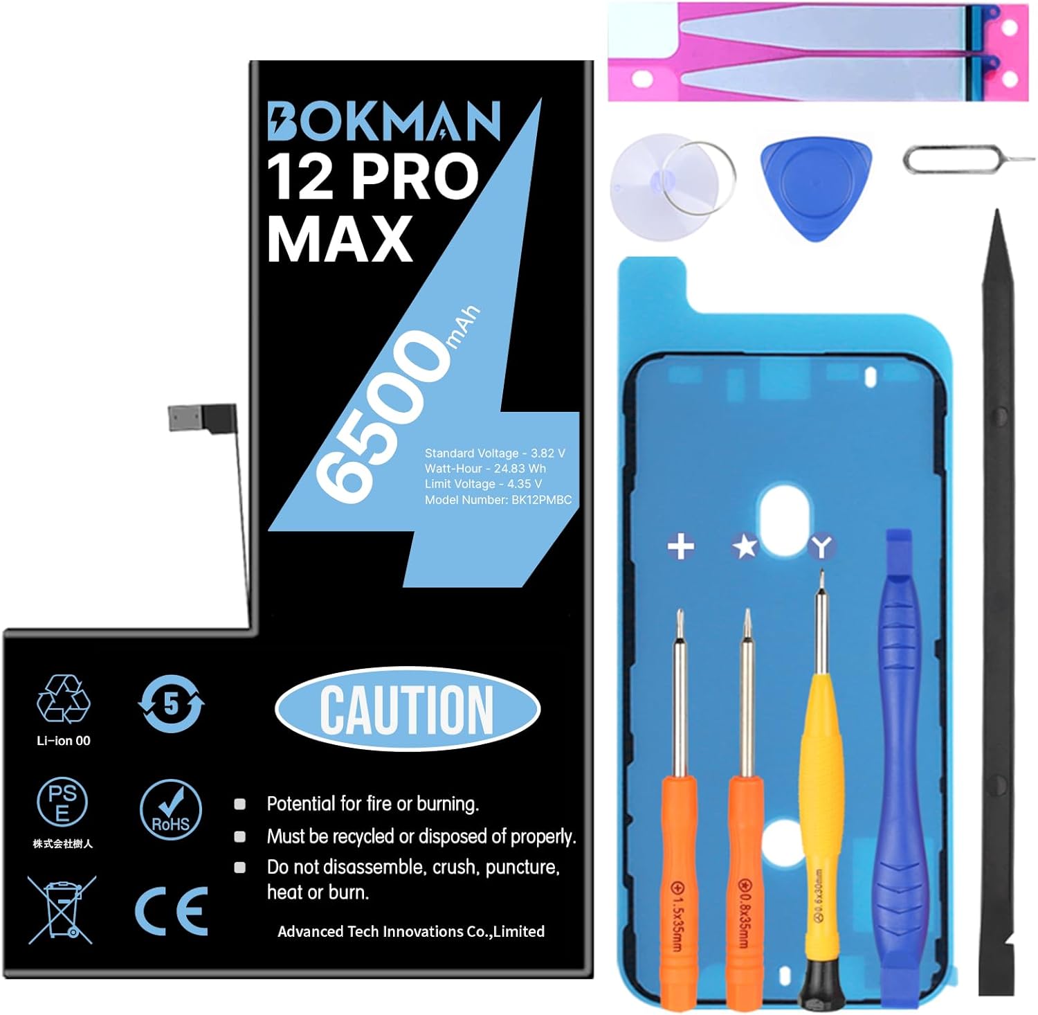 bokman Akku für iPhone 12 Pro Max, 6500 mAh Hochleistungs-Lithium-Polymer-Akk...